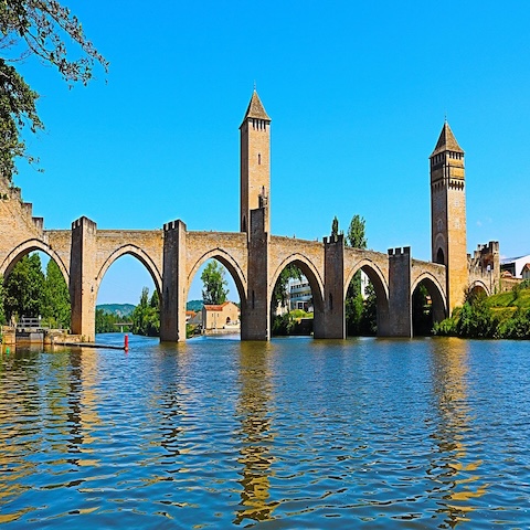 My geological engineer/exploration geologist daughter Évelyne's train passed near Pont Valentré in Cahors, France. Évelyne noted that it also looks like Manic-5 hydroelectric power generating station in QC, Canada.