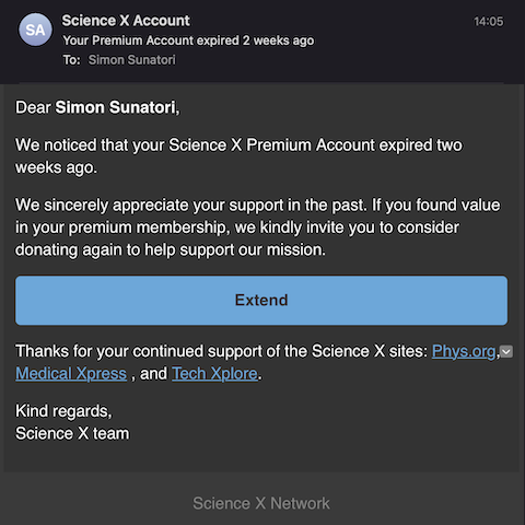 We noticed that your Science X Premium Account expired two weeks ago. |