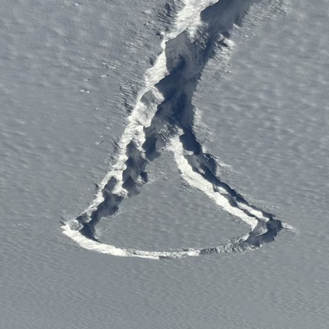 Here is a snow trail made by an animal, most likely a dog, that looks like Bell Canada's old logo.