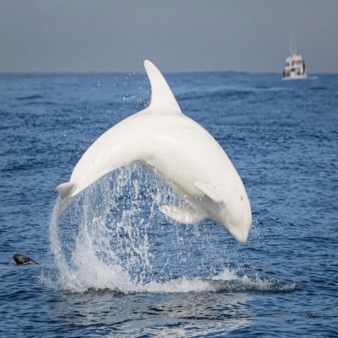 Here is snow accumulated on a tree that looks like flying white dolphin.