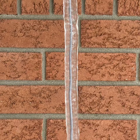 Artificial icicle is slowly building up to become fatter and fatter as ambient temperature hovers around the freezing point of dihydrogen monoxide (H2O) at around 273 K.