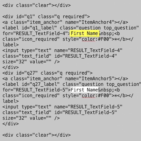 HTML source code does not make distinction, so it is impossible to know which one is "Last Name".