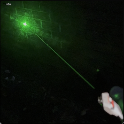 Here is a simulated Star Trek phaser by a laser beam emitted into ambient air from 2-in-1 Design 532 nm Green & 650 nm Red Light Laser Pointer Pen Portable PPT Pointer Pen Type-C Chargeable with 2 Switch Buttons for Business Office Presentation Outdoor.