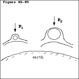 r. (We should imagine a stretched rubber band.) Obviously, such a gravitational structure creates additional pressure at Point 1 and Point 2 of the earth's surface.